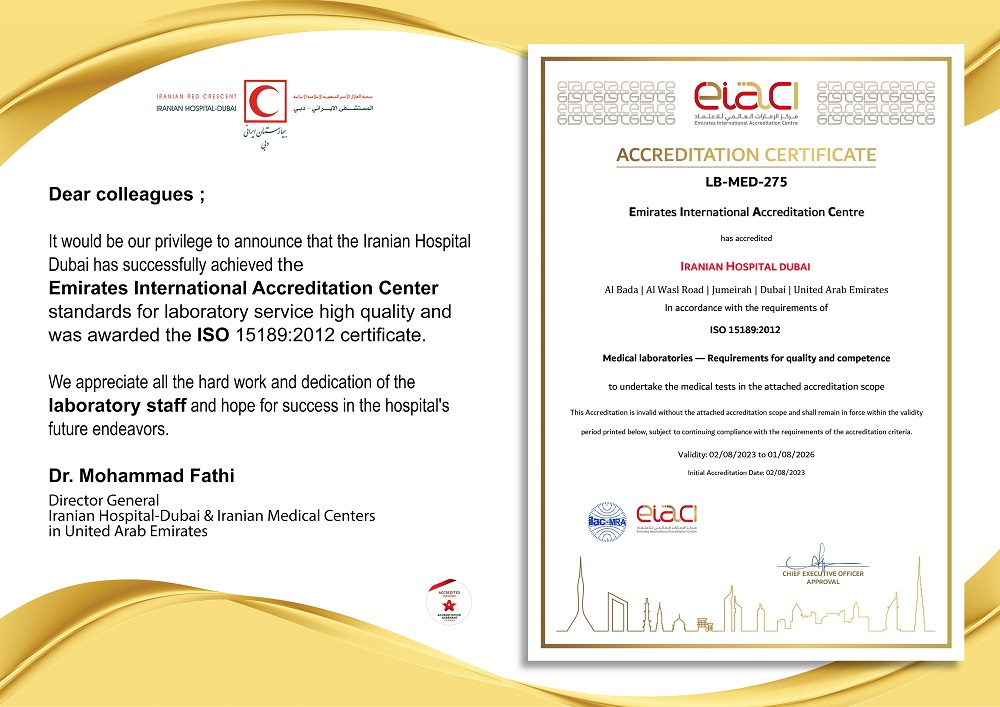 The vision of the Iranian Hospital is to be the most sophisticated and advanced hospital-based laboratory in the country- delivering outstanding service and state-of-the-art science in a facility that provides cutting-edge advancements in disease diagnosis impacting many lives. Our innovative technologies and best practices help ensure speed, efficiency and quality assurance in the lab setting.